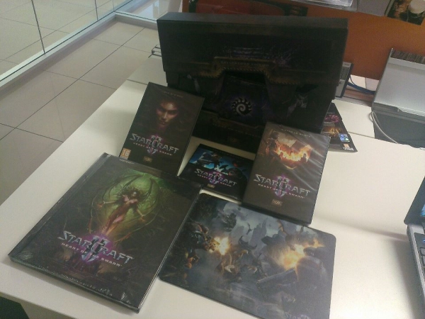 In redazione è già arrivata l'edizione da collezione di Heart of the Swarm, come potete vedere dalla foto riportata in questa pagina. All'interno della confezione si trova la versione completa del gioco su DVD-ROM, DVD e Blu-Ray "Dietro le quinte", la colonna sonora su CD, il libro illustrato di Heart of the Swarm e il tappetino per il mouse Zerg Rush. Questa versione di Hots viene venduta al prezzo suggerito di 69,99 €.